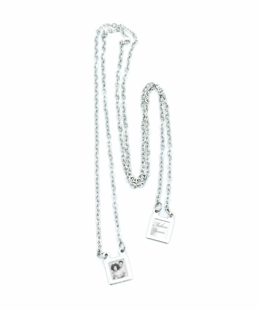Personalizamos esses lindos Escapulários em Aço Antialérgico com 3 diferentes possibilidades em Fotogravação: